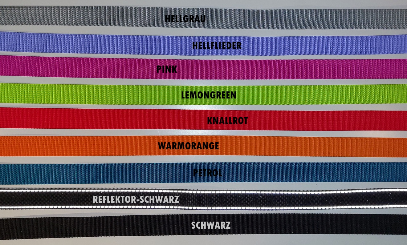 Solltest Du bei der Wahl der passlichen Gurtlänge unsicher sein, so liegst mit dem längeren Gurt immer richtig, denn Du kannst überstehende Gurtenden einfach selbst einkürzen und mit etwas Hitze wieder versiegeln.