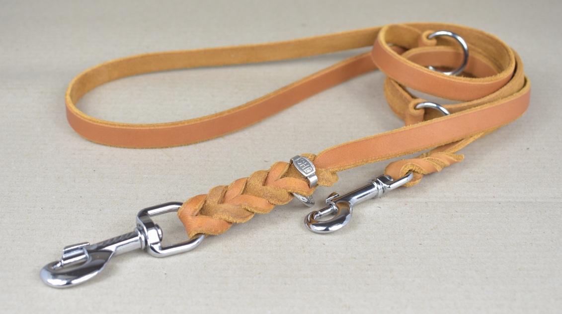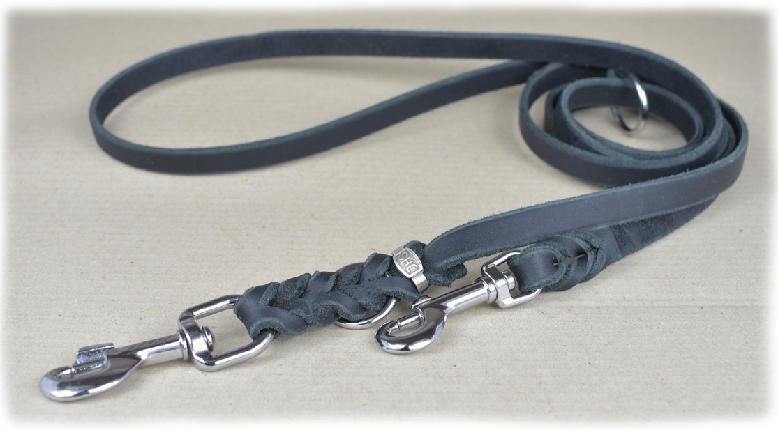 Hundeleine aus Fettleder | geflochten | 2-fach-verstellbar | schwarz