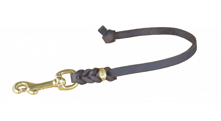 Kurzführer für Hunde | 35cm lang | OHNE Handschlaufe | Fettleder, geflochten | in braun | in 10 & 12mm Breite | Karabinerhaken aus Messing oder verchromtem Stahl
