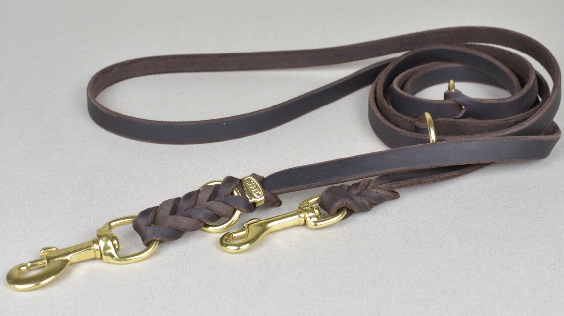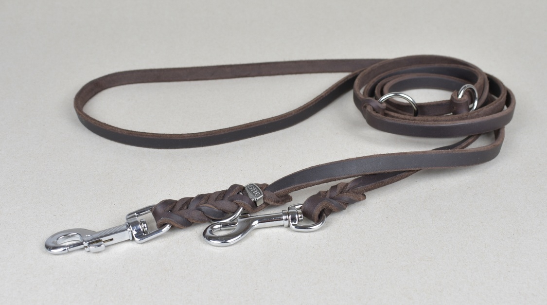 Lederleine | geflochten | Fettleder | 3-fach-verstellbar | braun