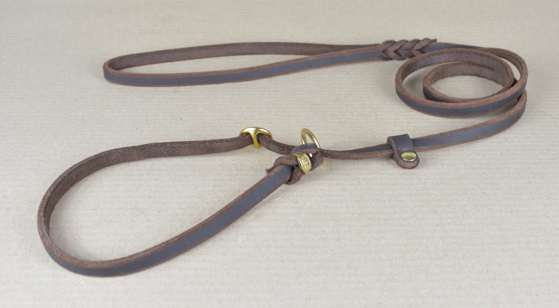Retrieverleine | Agility-Leine | mit Zugstopp | Fettleder | geflochten