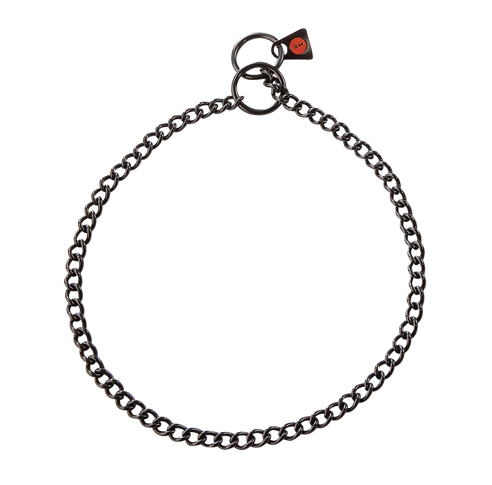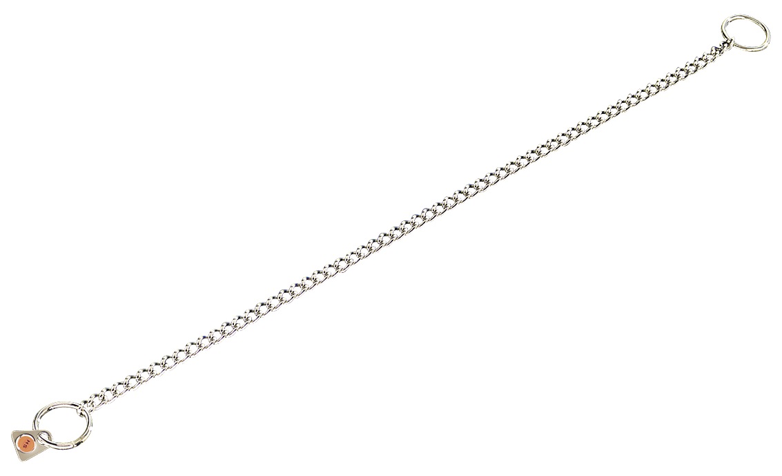 Dieses Kettenhalsband kann geschlossen als Schlaufe über den Kopf des Hundes gezogen werden.
