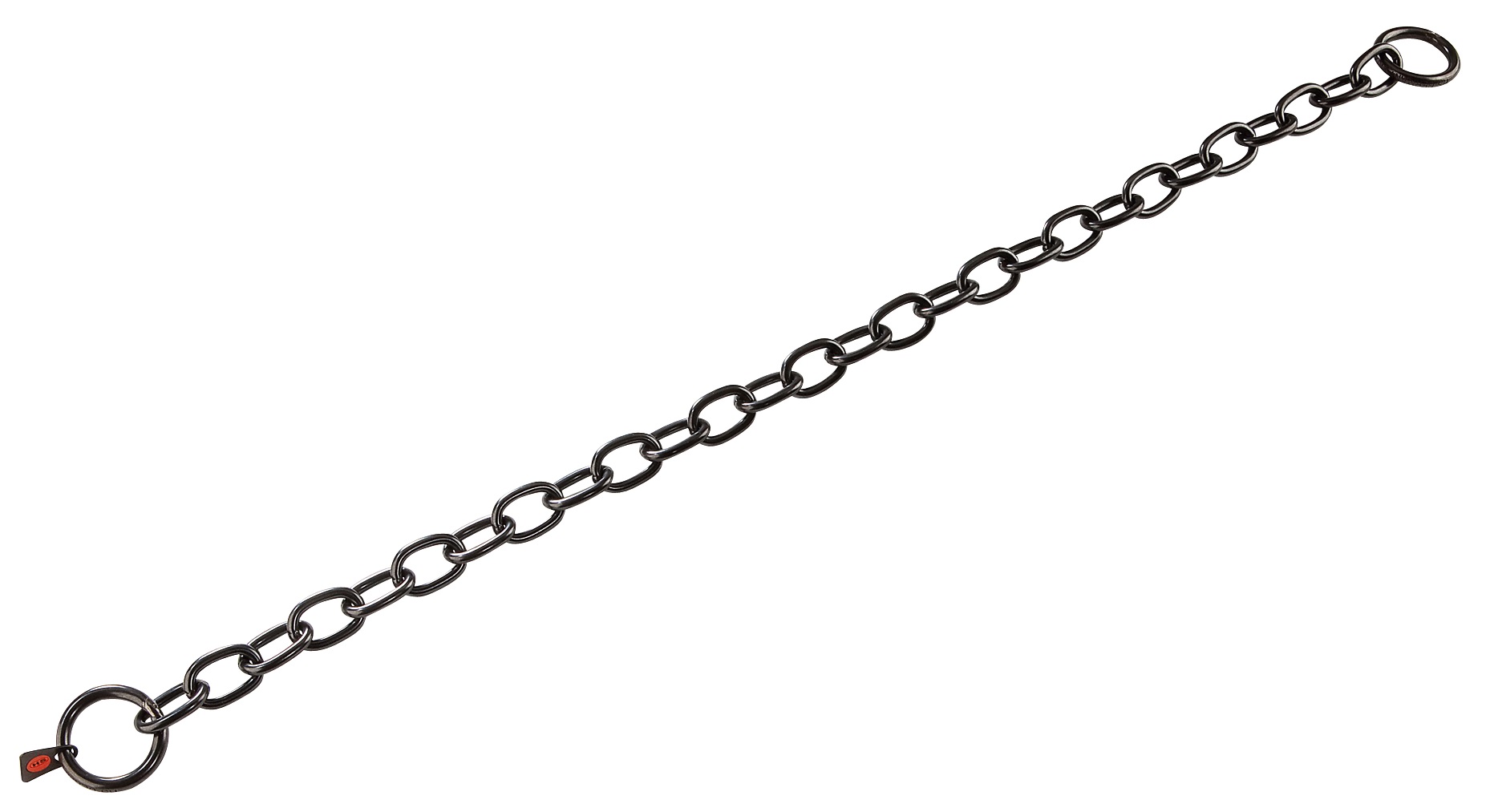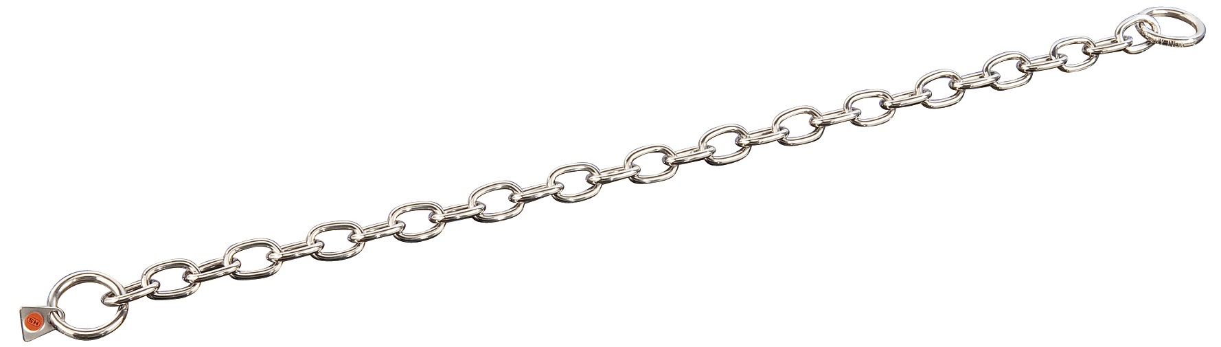 Durch die Schlaufenbildung kommt es an den Endringen zu einem ‚Längenverlust‘. Daher sollten 4cm (bei einem 4mm starken Kettenhalsband) zur Größenermittlung der richtigen Kettenlänge zum Kopfumfang Deines Hundes hinzu addiert werden.