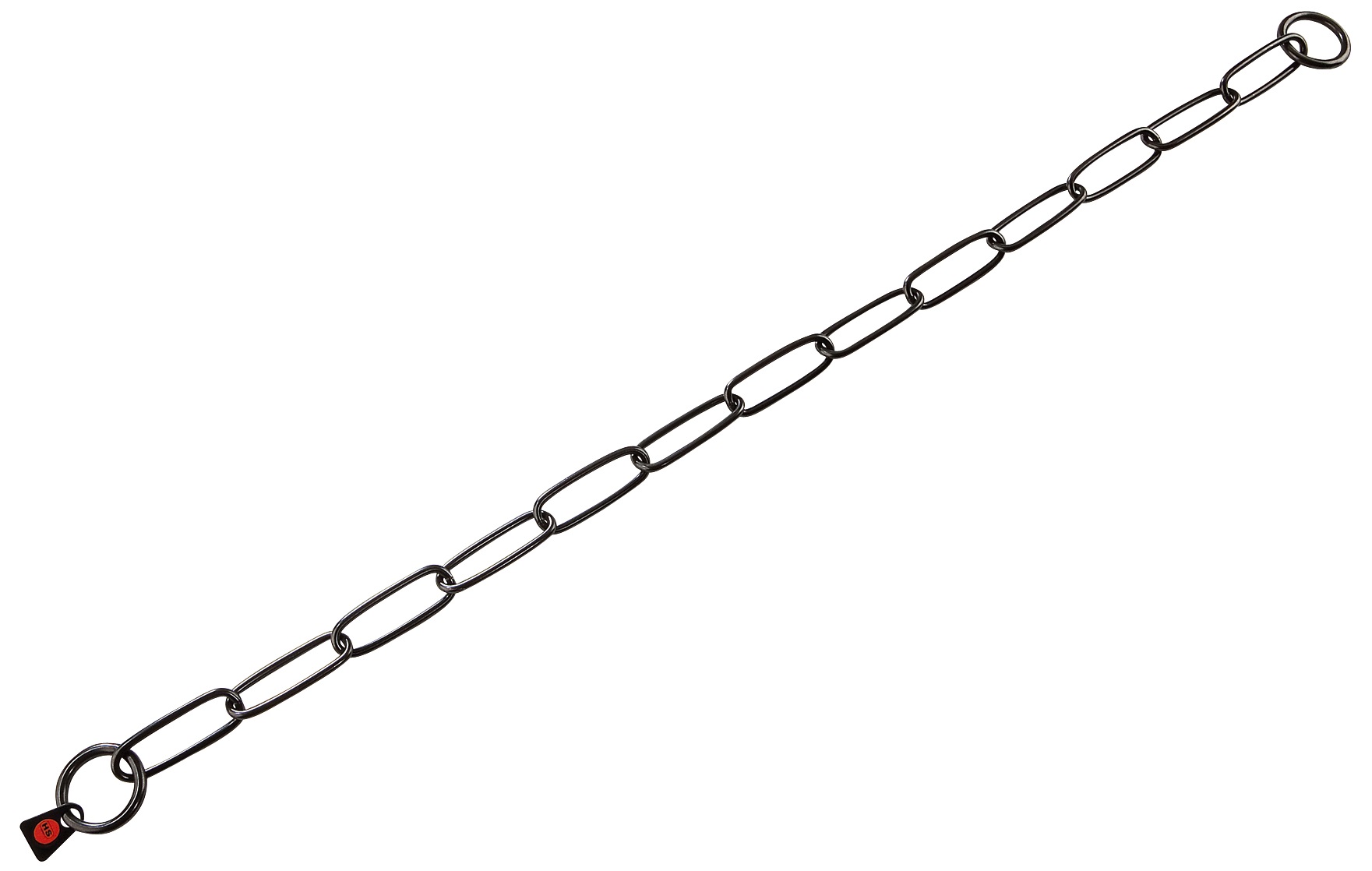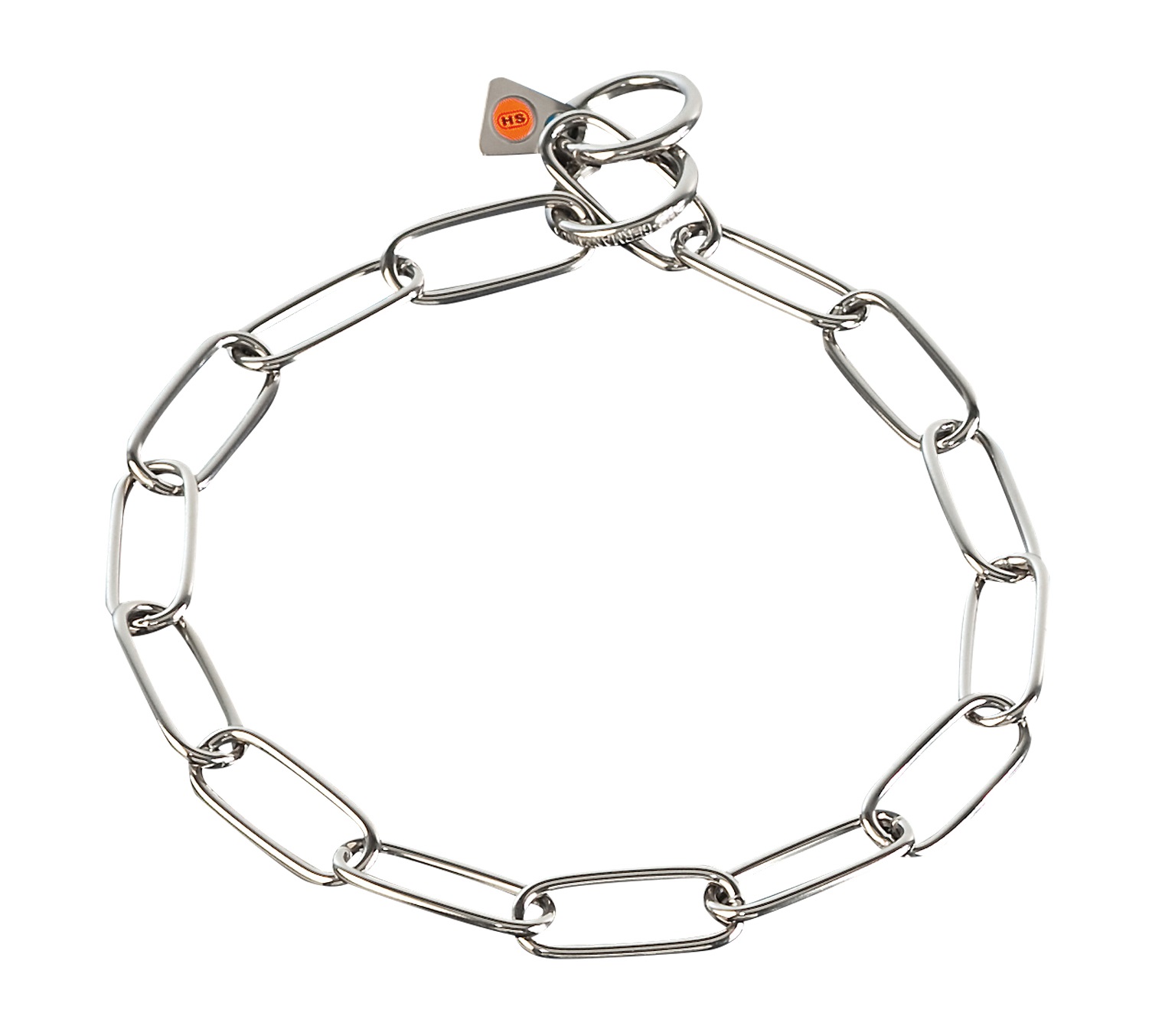 Das klassische SPRENGER-Kettenhalsband mit langen Gliedern und zwei Endringen.