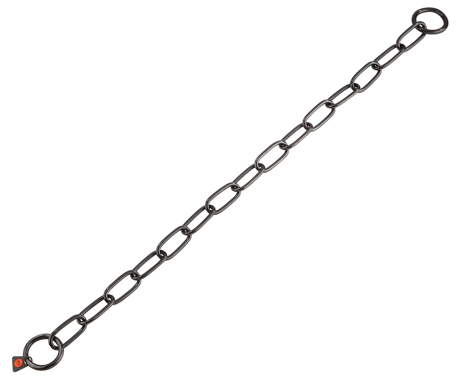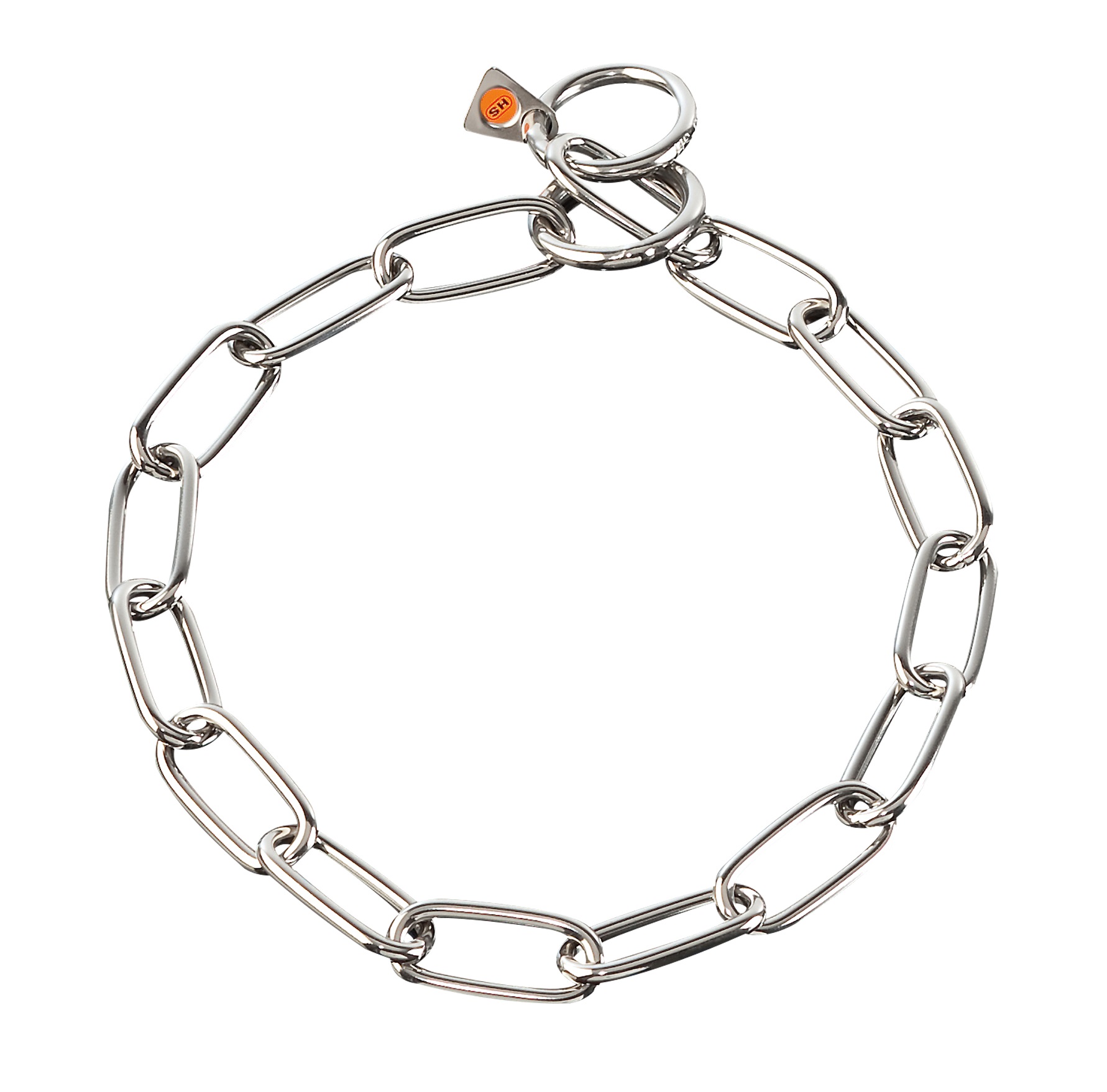 Das klassische SPRENGER-Kettenhalsband mit langen Gliedern und zwei Endringen.