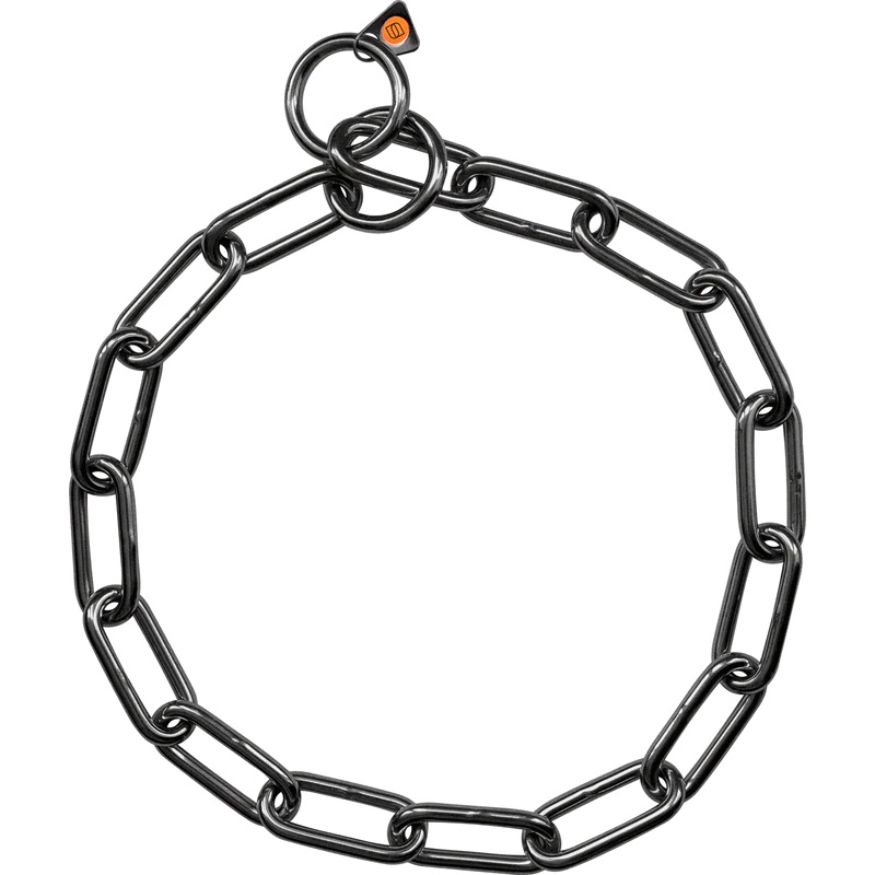 Das extra starke SPRENGER-Kettenhalsband mit langen Gliedern und zwei Endringen.